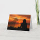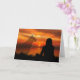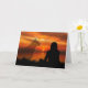 Um cartão de pêsames comovente e tocante para um animal de estimação perdido, mostrando a silhueta de uma mulher olhando para um belo pôr do sol e a imagem tênue de uma presença fantasmagórica de um cachorro ao lado, fazendo-lhe companhia.