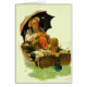 Artista: Ancião & cão de sono de Norman Rockwell | em linhas de pesca do barco a remos w/multiple