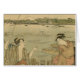 Cartão Pescadores de Bloco de Madeira Japoneses