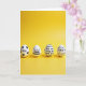 Este design mostra um amplo campo de amarelo brilhante que parece brilhar como o sol, com quatro ovos brancos lisos alinhados na parte inferior como amigos reunidos 🌷. No ovo à esquerda, a palavra “YEAH” aparece em preto com alguns corações pretos minúsculos espalhados ao redor, como um grito de confiança destinado a alguém especial. O próximo ovo carrega as palavras “YOUR PERSONAL” em preto, posicionadas sob um semicírculo arrumado de pequenos pontos pretos que parecem um gesto suave e atento. O terceiro ovo está repleto de letras pretas sobrepostas, onde é possível distinguir palavras como “HAPPY” e “JOY”, criando a aparência de uma conversa animada entre companheiros próximos 🐰. À direita, um rosto sorridente simples em preto está centrado no ovo, com linhas curtas que irradiam dele, sugerindo um sorriso caloroso direcionado ao grupo. As marcas pretas de alto contraste se destacam nitidamente contra os ovos brancos, e a iluminação uniforme faz com que suas superfícies arredondadas pareçam lisas e brilhantes. O texto está centrado em cada ovo, com os corações e o semicírculo de pontos