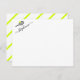 Cartões de notas personalizados com listras preppy e uma simples e bonita ilustração de raquete de ténis e nome ou texto personalizado em uma fonte feminina e moderna, com monograma preto e branco. Qualquer tenista feminina apreciaria o visual elegante deste presente útil e moderno com tema de ténis.