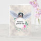 Uma bonito cor d'água redonda falso coroa dourada coberta com folhas de eucalipto e rosas cor-de-rosa floral tem a face de um cão da Montanha Bernesa a espreitar sobre a borda superior. O cão tem asas longas e extensas de anjo e uma falsa halo de ouro e está a olhar para baixo na redação; o céu ganhou um anjo. O dentro tem o poema chamado "Uma ponte chamada amor" Personalize a mensagem de cobrir e dentro de simpatia para com um membro da família ou amigo para que eles saibam que estão lá para eles durante o seu difícil período de perda.