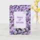 O flox roxo floresce num jardim de verão com um quadro de lavanda e um texto de 45 de aniversário feliz. O texto dentro é editável.