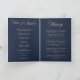 This modern minimalist 4-page funeral memorial order of service program template with elegant gold script on a classic blue background is thoughtfully designed to honor a cherished life with simplicity and grace. Featuring a clean layout with a customizable photo and fully editable text, it provides space for the order of service, obituary, prayers, and meaningful messages.
