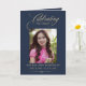 Cartão Photo Elegant Blue Gold Funeral Keepsake Program