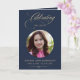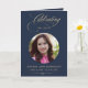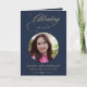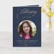 Cartão Photo Elegant Blue Gold Script Funeral Program