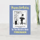 Policial invejoso de um Bombeiro que tem um elevador particular para usar. Um cartão de aniversário para o melhor bombeiro do mundo! Saudações para um bombeiro no seu aniversário.