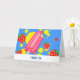 Um obrigado com um tema de verão. Concebidos com um picolé cor-de-rosa e alguns morangos vermelhos e plasmas de tinta amarela. Fundo azul. Mensagem que você pode personalizar o dentro do cartão.