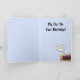 Cartão engraçado com um porco preguiçoso que teve bolo de aniversário demais. O texto da dentro diz: "Façam O Pig Out No Seu Aniversário." Você pode personalizar todo o texto para tornar este cartão seu próprio. Placa Super bobo para o amante de os animais. Foto ©Christine Greenspan