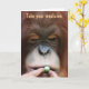 Um belo cartão que também pode trazer um sorriso para o rosto do receptor. Às vezes, o caminho para a recuperação envolve tomar algum remédio, e esse doce órfão orangotango está ajudando a demonstrar a técnica adequada. A venda deste cartão também beneficia o bem-estar da vida selvagem, ajudando o artista a arrecadar fundos para o centro de cuidados de orangotango na ilha de Borneo. O artista é voluntário naquela instalação.