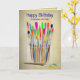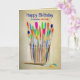Saudações de aniversário ideais para aquele artista, o artesão, etc. pessoa do tipo. Pincéis de artistas em um vidro com tinta de cores variadas neles.