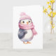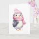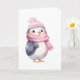 Cartão Pinguim Aquarela com Cachecol Rosa