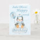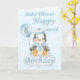 Um cartão de aniversário lindo de pinguins de 6 meses. O cartão apresenta um pinguim bebê sentado numa nuvem segurando um balão. Um doce design para um menino que terá meio ano de idade. Adicione o nome da criança à frente da placa para personalizá-lo para aquele garotinho especial e, em seguida, mude a dentro da mensagem para personalizar a placa.