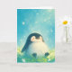 Um bebê pinguim fofinho senta-se pacificamente em um prado verde exuberante, banhado pelo brilho suave da luz solar quente. Os olhos do pinguim estão fechados, e um sorriso gentil ilumina seu rosto, exalando pura alegria e serenidade. Flocos de neve delicados flutuam pelo ar, adicionando um toque de magia à cena. O cenário apresenta um céu azul sonhador repleto de luz suave desfocada, criando uma atmosfera etérea e emocionante. Esta ilustração encantadora captura uma mistura caprichosa de inverno e primavera, tornando-a perfeita para os amantes da natureza e dos animais.