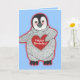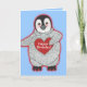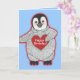 O pinguim Whimsical expressa seus desejos de amor e aniversário com um grande coração vermelho em seu peito. Marca original de Laura J. Holman © 2011.
