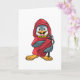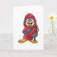 Cartão Pinguim como Bombeiro com extintor de incêndio