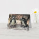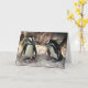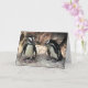 Este cartão de nota caracteriza dois pinguins africanos adoráveis que estão em uma borda rochosa. São os pássaros aquáticos, flightless cujas as asas têm aletas tornadas. Cada um tem uma listra preta e uns pontos pretos na caixa. O teste padrão dos pontos é original para cada pinguim, apenas como impressões digitais humanas. Têm as glândulas cor-de-rosa acima de seus olhos e os pés cor-de-rosa e pretos.