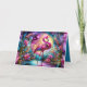 A luminous pink flamingo stands gracefully beneath a glowing moon, surrounded by blooming florals and flowing botanical lines in a dreamy stained glass mosaic style. Jewel-toned blues, teals, violets, and radiant magentas blend into a celestial watercolor backdrop, while golden outlines create an elegant art nouveau feel. The design evokes whimsical boho glamour with a touch of tropical enchantment, balancing bold color with soft, romantic energy. AI generated artwork.