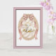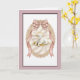 A soft and elegant Easter illustration featuring a gentle white lamb resting on straw with a glowing halo, symbolizing the Lamb of God and the message of faith, innocence, and renewal celebrated during Easter. The lamb is framed within a delicate vintage-style oval lace frame adorned with a graceful pink ribbon bow and floral accents. The pastel tones and decorative border create a charming and peaceful design, perfect for a personalized Easter greeting card that expresses hope, love, and spiritual blessings.