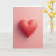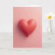 This greeting card features a coral-red heart centered on a soft blush-pink background, creating a calm and romantic look. The heart appears three-dimensional, with smooth curves and a gentle shine that catches the light. Soft lighting from above creates a faint shadow underneath, making the heart seem as if it’s floating slightly above the surface. Tiny bead-like droplets are scattered across the heart, adding subtle texture and a lifelike touch. There are no words or extra elements on the front, keeping all the focus on the heart itself. The design feels warm and thoughtful, making it an easy way to express care and affection on Valentine’s Day