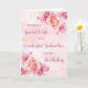 Cartão de aniversário para madrinha com flores cor-de-água rosa e púrpura e verso pensativo.