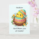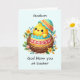 Celebre a alegria da Páscoa com um cartão doce e festivo para o seu afilhado! Um pintinho de bebê alegre eclode do seu ovo, rodeado por flores coloridas de primavera, colocado sobre um fundo pastel macio. Este brilhante e feliz design capta o entusiasmo da estação, fazer uma maneira maravilhosa de enviar desejos de Páscoa calorosos e lembrá-lo como ele é especial!
