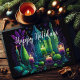 Cartão Pintor de Aquarela Vela de Natal Púrpura Verde