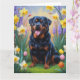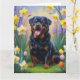 Cartão Pintura de Cão Rottweiler com Flores de Primavera