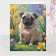Cartão Pintura de Flores da Primavera de Pug Dog