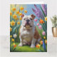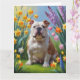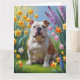 Cartão Pintura de Flores da Primavera do Bulldog