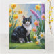 Cartão Pintura de Flores da Primavera do Gato Smoking