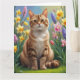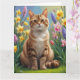 Um gato alegre senta-se pacificamente sobre a relva verde-luxuosa, cercado por primavera coloridos florescentes sob um céu azul macio. Esta pintura digital de óleo captura um momento sereno com pinceladas expressivas, cores quentes e um senso de alegria gentil.