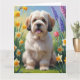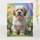 Cartão Pintura de Flores de Primavera do Cão Lhasa Apso