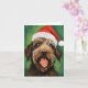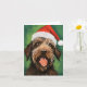 Design de Natal colorida e alegre com um Cabeleireiro Apontando Griffon vestindo um chapéu de Papai Noel.