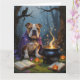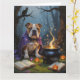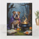 Entra numa noite mágica de Halloween com esta pintura de óleo balbuciosa apresentando um adorável filhote de bruxa, sentado ao lado de um caldeirão borbulhante numa floresta sombria. Cercado por poções brilhantes, livros ortográficos antigos e faíscas mágicas cintilantes, a cena é cheia de mistério e charme. Texturas vítreas ricas e matizes profundos do Halloween criam uma vibração acolhedora e encantada perfeita para amantes da estação assustadora.