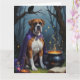 Entra numa noite mágica de Halloween com esta pintura de óleo balbuciosa apresentando um adorável filhote de bruxa, sentado ao lado de um caldeirão borbulhante numa floresta sombria. Cercado por poções brilhantes, livros ortográficos antigos e faíscas mágicas cintilantes, a cena é cheia de mistério e charme. Texturas vítreas ricas e matizes profundos do Halloween criam uma vibração acolhedora e encantada perfeita para amantes da estação assustadora.