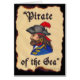 A pintura de Linda Baysinger Peck de um capitão pirata, em pergaminho de fundo. O texto diz "Pirata do Mar". Cartões de excelente para aqueles que desfrutam de fadas renascentistas e aventuras de baloiço. © Linda Baysinger Peck Todos os Direitos Reservados