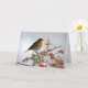 Cartão Pisco de peito vermelho europeu e baga alaranjada
