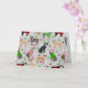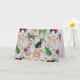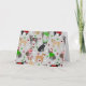 Cães de Natal bonitos com cores pretas, desfocadas, brindle, azuis e casaco vermelhas vestidos em roupas festivas de Natal, chapéus de Papai Noel e blusas de argila com padrão de Enfeites de natal espalhados.