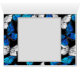 Borboletas realistas, azuis e brancas têm um padrão uniforme em fundo preto.