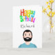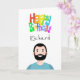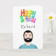 Ótima Ilustração de um personagem masculino com dentro de texto personalizável e texto de aniversário feliz colorido na frente. O cabelo, as sobrancelhas e as cores das roupas podem ser facilmente trocados.