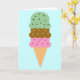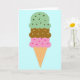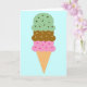 Este design apresenta um cone de sorvete triplo (morango, chocolate com chip de chocolate branco e mint chocolate chip) em um fundo azul claro. Personalize este cartão para convites de festas, cartões de nota ou qualquer coisa que você queira!