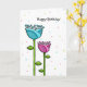 Cartão Placa de aniversário do Doodle Flowers azul-rosa