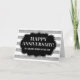 Cartão de saudação de aniversário de funcionarios ou funcionário com faixas de brilho prateado e branco e detalhes em preto e branco.