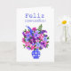 Uma carta de aniversário bonito com uma saudação espanhola e um vaso de flores cor-de-rosa e azuis, de uma colagem de papel pintada à mão por Judy Adamson. Se você quiser que o texto do cobrir frontal seja alterado de alguma forma (por exemplo, uma idade, pessoa ou língua diferente), entre em contato comigo através da minha loja e eu ficarei feliz em fazer isso hetero.