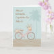 Este cartão de aposentadoria bonito ilustra uma bicicleta com flores no cesto e no verso, uma palmeira, pintada de chão e com um fundo verde-claro. Obrigados para o hungryjpeg e Horhew para alguns dos elementos do design.