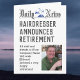 Cartão de aposentadoria na forma de jornal. Cartão de aposentadoria de cabeleireiro. Sua escolha de nome e foto foram adicionadas como a pessoa que se aposenta.