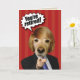 Cartão de aposentadoria humorístico. Este cão latido, "Você está aposentado!" preferencialmente do que "Você está demitido!", como seu companheiro de sósia.