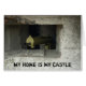 Um cartão com a segunda metralhadora de navegação na guerra mundial dentro um bunker de concreto. Um barril está fora da janela do bunker