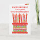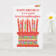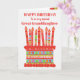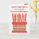 Você pode adicionar a idade a este cartão de aniversário brilhante para sua neta excelente, com um bolo de aniversário de morango. O bolo tem muitas velas com diferentes padrões e há uma banda com padrões em volta do bolo com frutas coloridas de verão - morangos, framboesas, limões e fatias de laranja. Acima do bolo, a saudação, em letras vermelhas, é "FELIZ ANIVERSÁRIO a uma neta Excelente muito especial" e no bolo há espaço para você acrescentar a idade, seguida de "anos de idade hoje!" em letras brancas. Sinta-se à vontade para personalizar a mensagem dentro, se desejar; você pode alterar a fonte e a cor, assim como a mensagem.